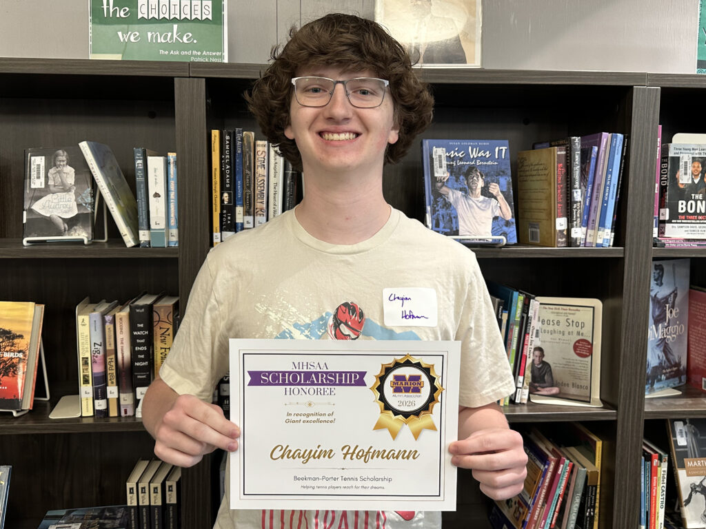 Chayim is a 2026 recipient of two scholarships facilitated by the Marion High School Alumni Association: the Beekman-Porter Tennis Scholarship, and the Marion Giants Athletic Boosters Scholarship, for a total award of $800.