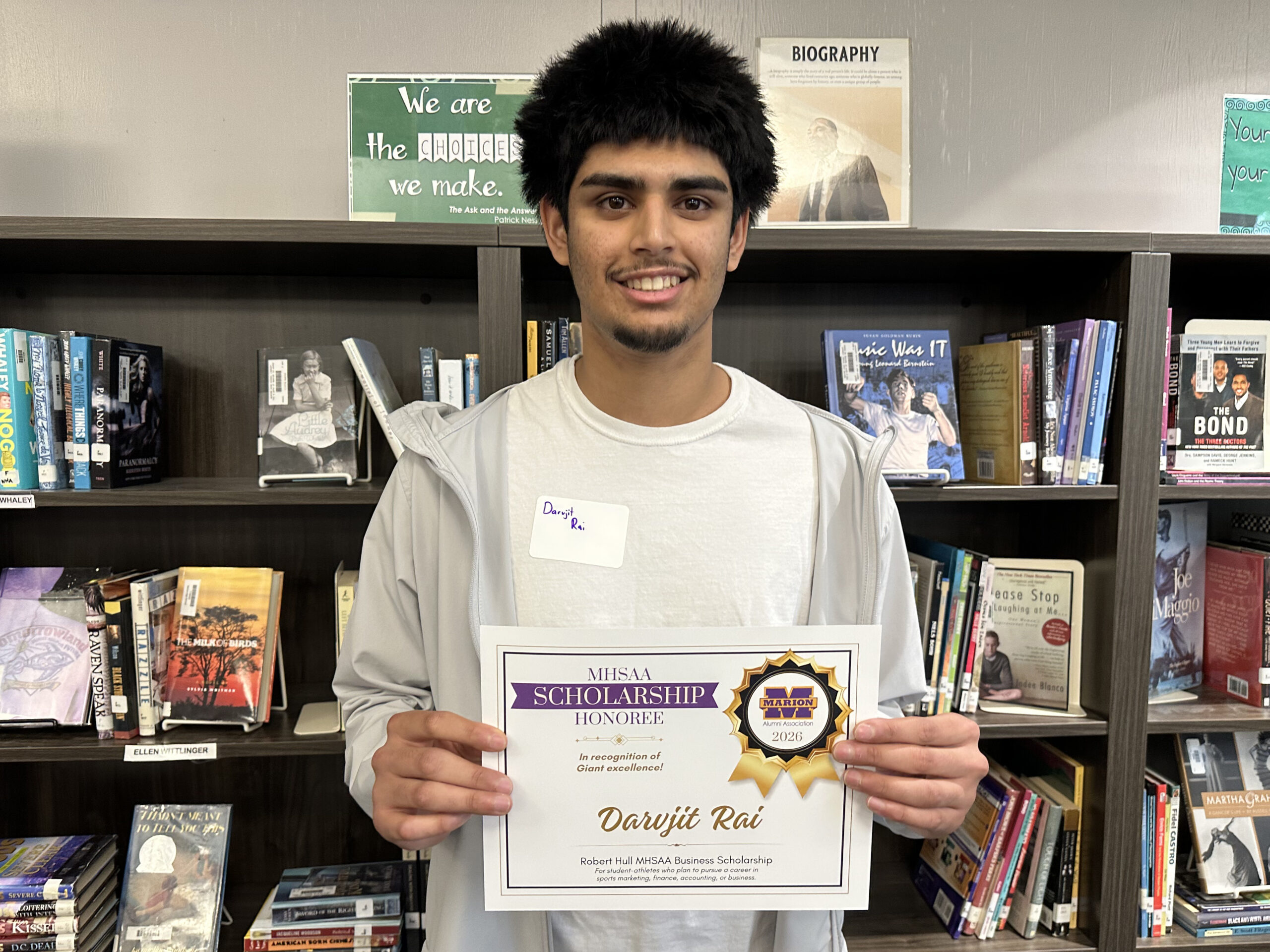 Darvjit is a 2026 recipient of the Robert Hull Business Scholarship facilitated by the Marion High School Alumni Association. He was also selected for a Grant County Sports Hall of Fame scholarship, which was announced during the MHSAA’s scholarship awards. His total award is $1,250.