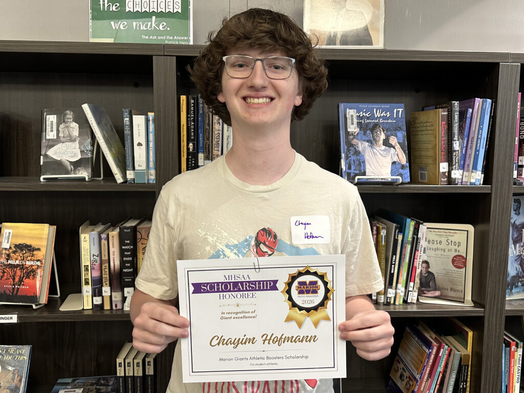 Chayim is in the top 5 percent of the Marion High School Class of 2026, and he is a College Board AP Scholar. He is vice president of Mu Alpha Theta National Mathematics Society and a member of National Honor Society.