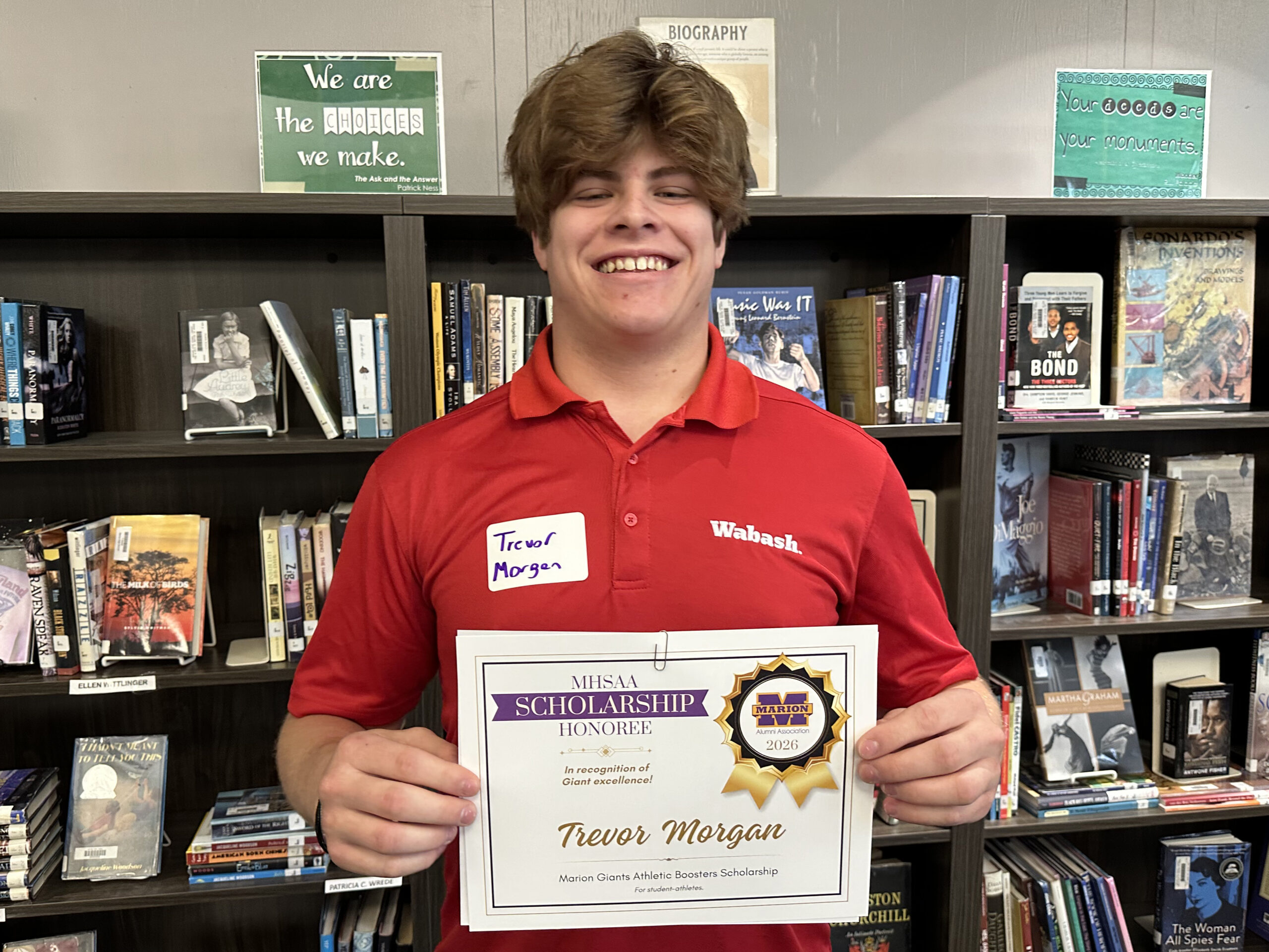 Trevor is a 2026 recipient of two scholarships facilitated by the Marion High School Alumni Association: the Jack and Dave Colescott Scholarship, and the Marion Giants Athletic Boosters Scholarship, for a total award of $2,250.