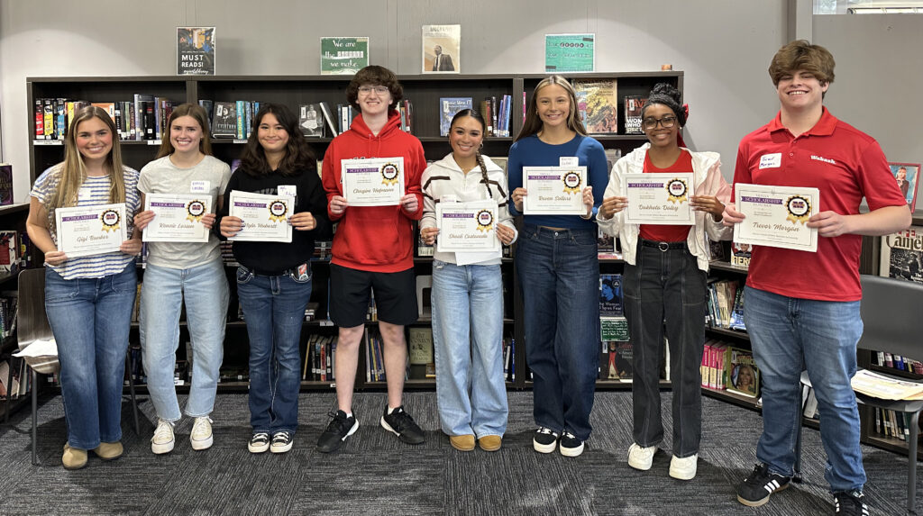 From left, MGAB 2026 scholarship winners are Gigi Bunker, Kenzie Larson, Nyla Hubartt, Chayim Hofmann, Shaeli Castaneda, Raven Sollars, Dakhota Daley, and Trevor Morgan.