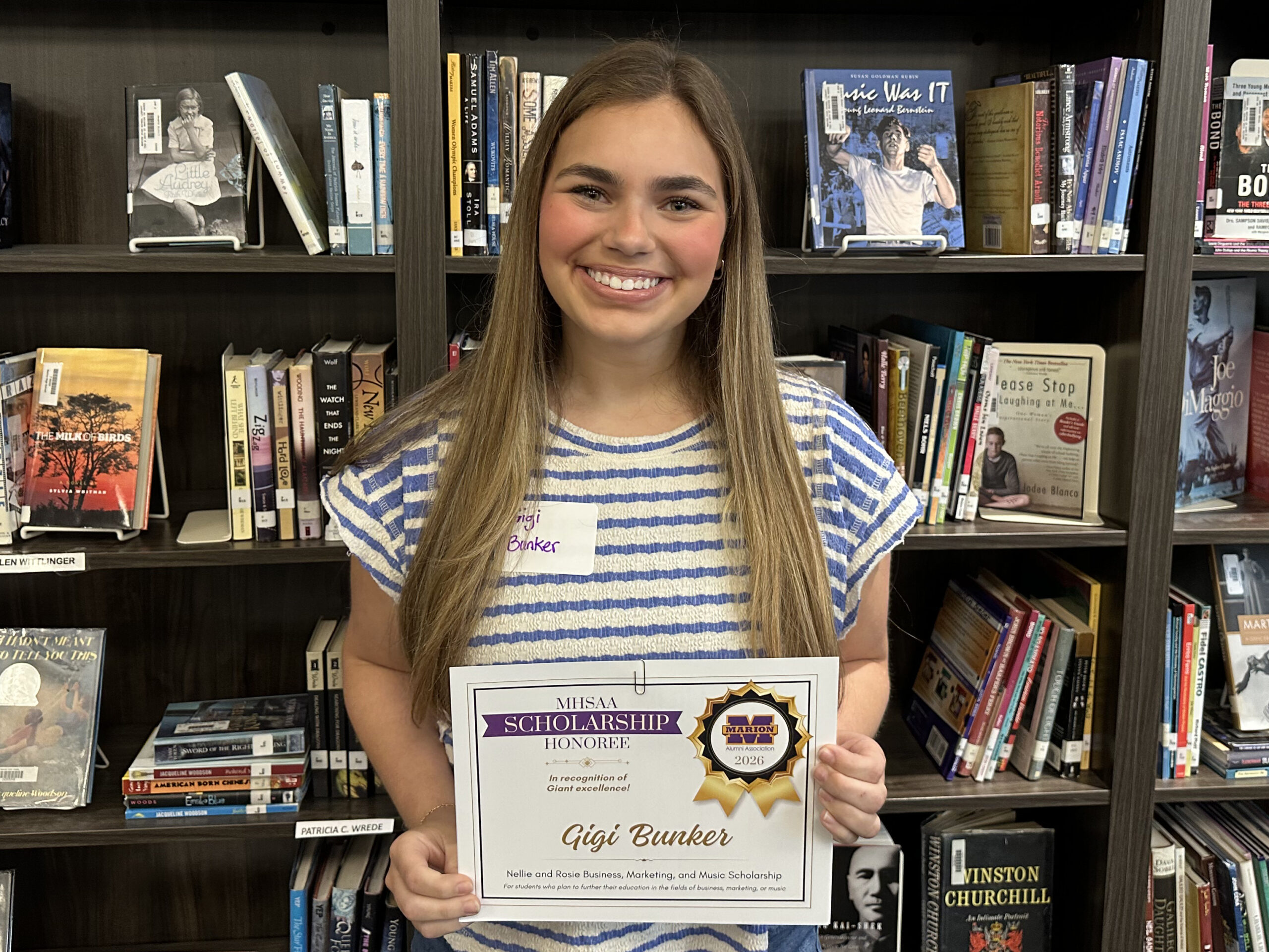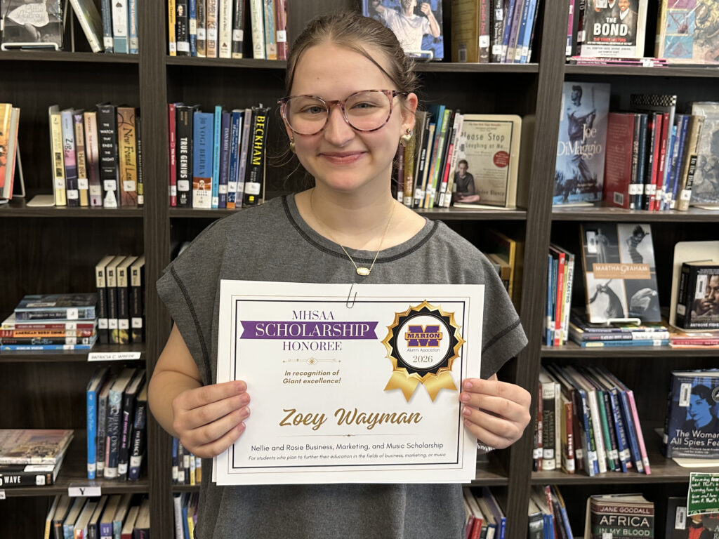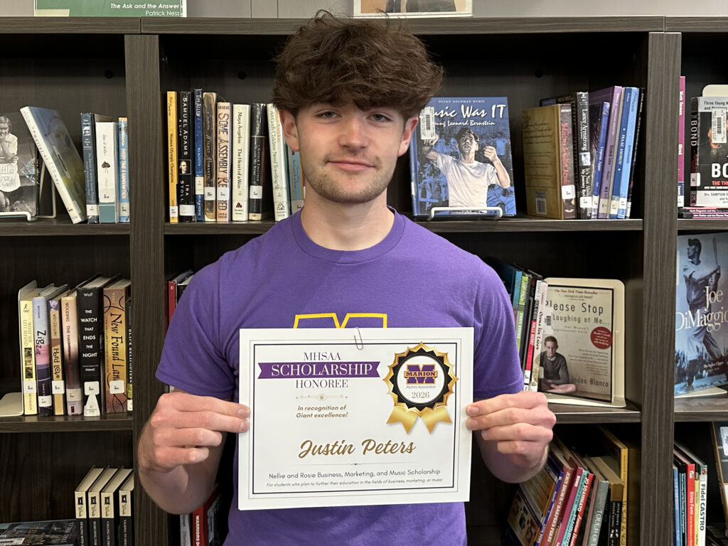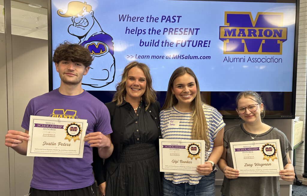 Marion High School Alumni Association congratulates this year’s winners of the Nellie and Rosie Business, Marketing, and Music Scholarship: Gigi Bunker, Justin Peters, and Zoey Wayman, all members of Marion High School’s Class of 2026.